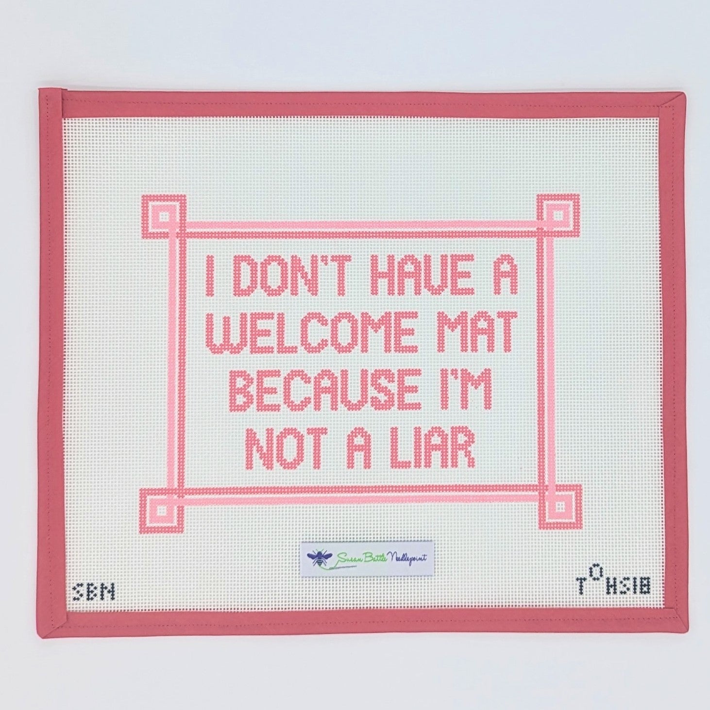 Add a humorous touch to your entryway with the Welcome Mat/Not a Liar needlepoint canvas! This playful design features a cheeky sentiment that will make your guests smile, making it a perfect addition to your home decor. Crafted on a 13 mesh canvas and measuring 10.25" x 7.75", this piece is ideal for stitching a delightful welcome mat that showcases your personality and sense of humor. Stitch this fun canvas and let it greet everyone with laughter right at your doorstep!