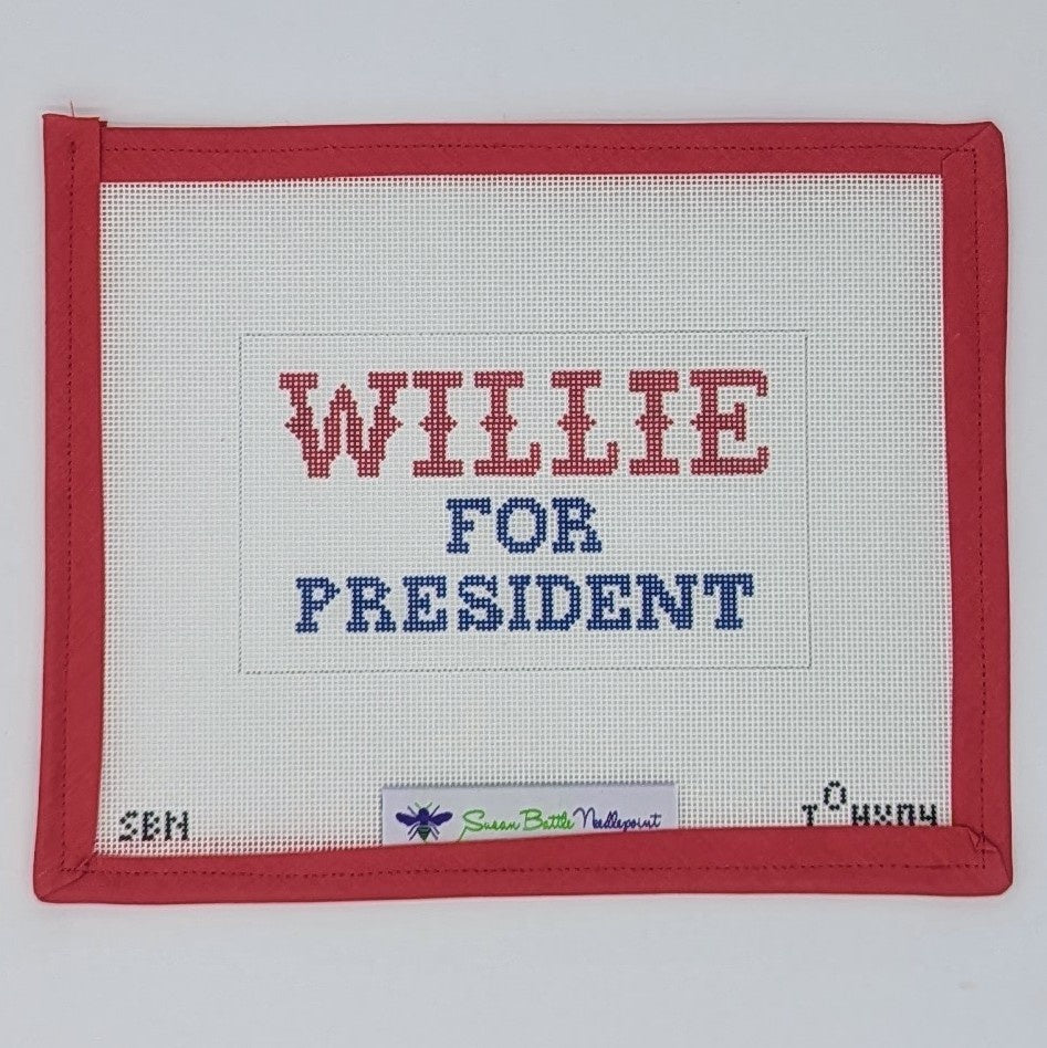 Show your support with a touch of humor and nostalgia using this Willie for President needlepoint canvas. Featuring a fun, political-themed design, this canvas is perfect for fans of quirky, bold patterns and political satire. Whether you're stitching it as a conversation starter or creating a unique gift, this design will add personality and humor to any needlepoint project.