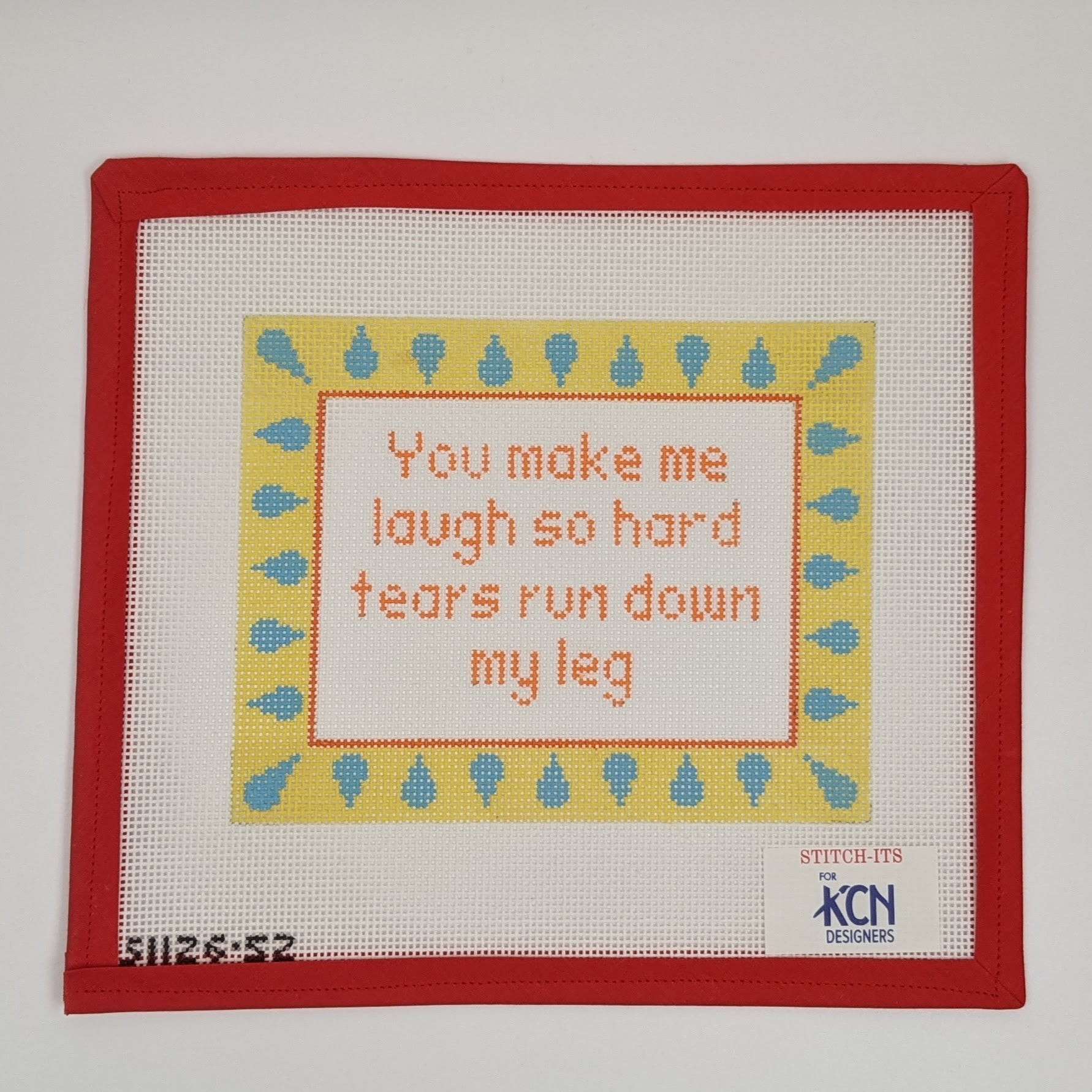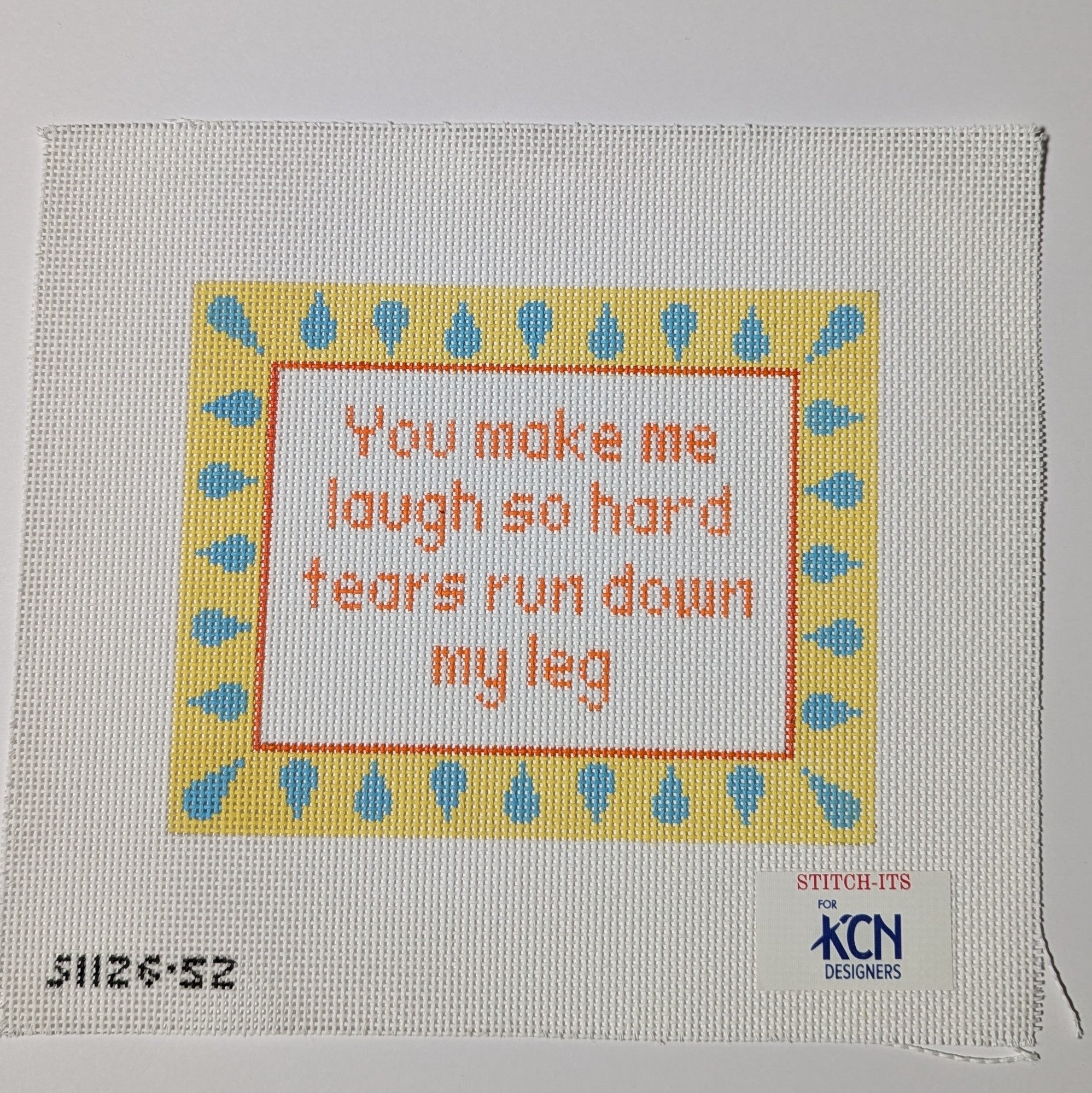 Bring a delightful sense of humor into your stitching adventures with the charming You Make Me Laugh So Hard needlepoint canvas! This whimsical design is perfect for capturing the joy of laughter, featuring playful motifs that will surely bring smiles to everyone around you. Measuring approximately 7" x 5.5", this 13-mesh canvas makes a fantastic decorative piece or a quirky gift for that friend who always knows how to lighten the mood. So grab your threads and get ready to stitch something that’ll keep the laughs rolling!